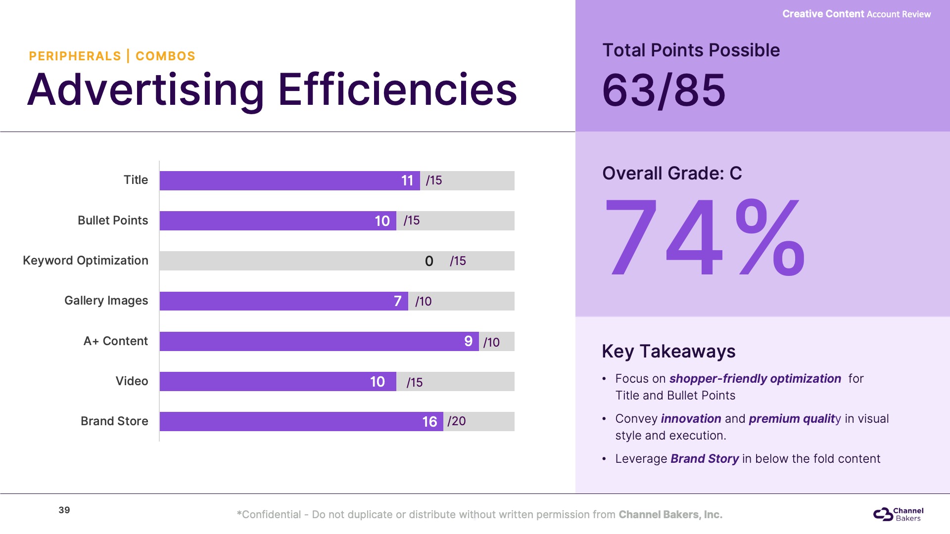 From agency overviews to data analytics and product audits, I transform information into thoughtfully designed presentations that captivate and engage.
